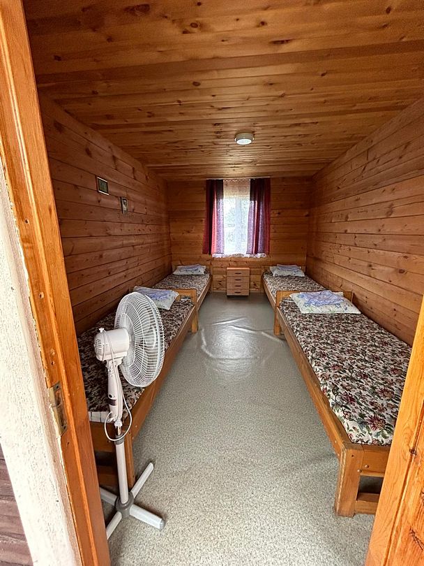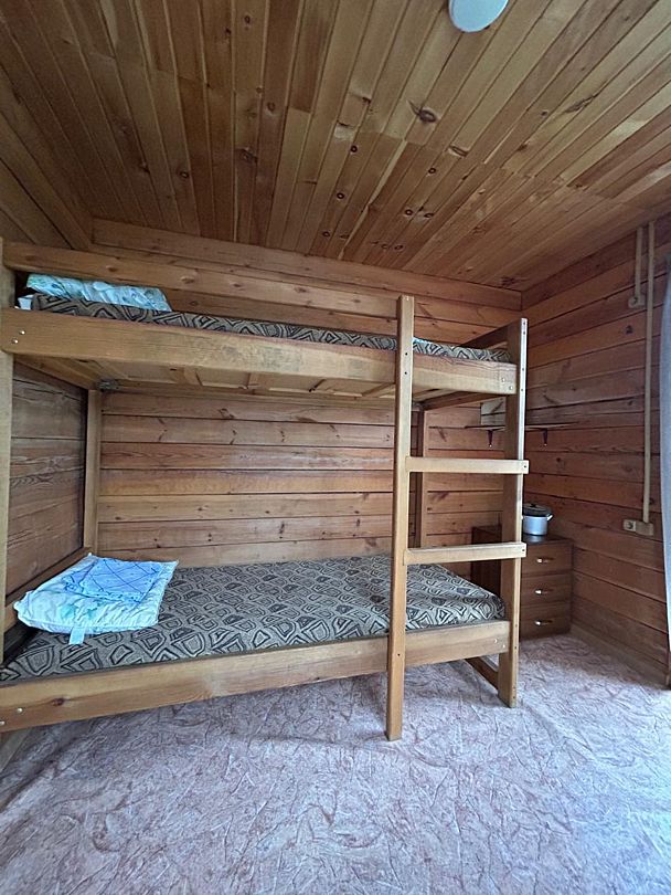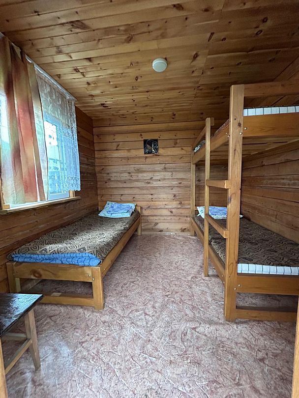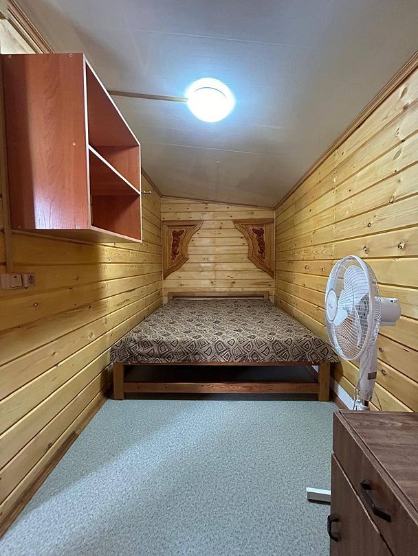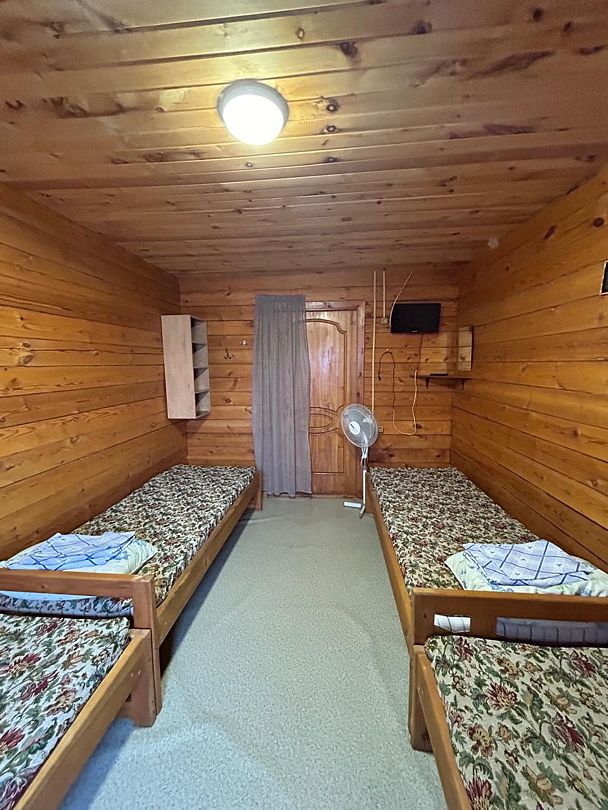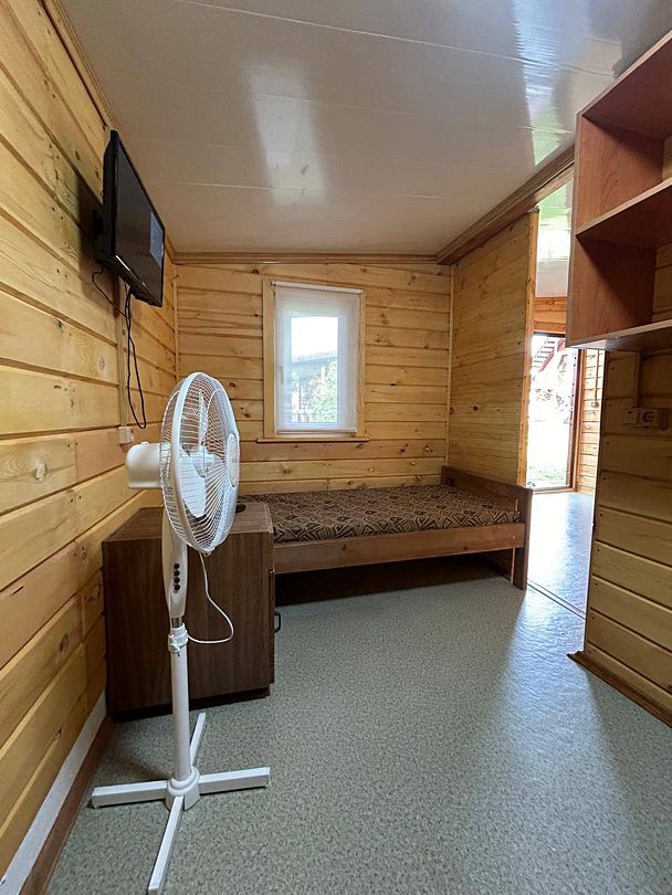 Номера из двух комнат. Кухня-студия с диваном, спальня: 2-х спальная ложа и односпальная кровать. Санузел, умывальник, душ в номере. Телевизор, микроволновая печь, холодильник, кондиционер, плитка, столешница с посудой и т.д. Собственная веранда.