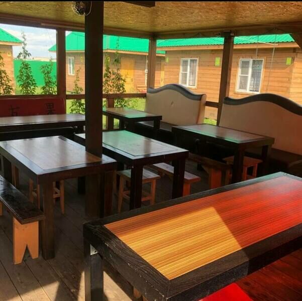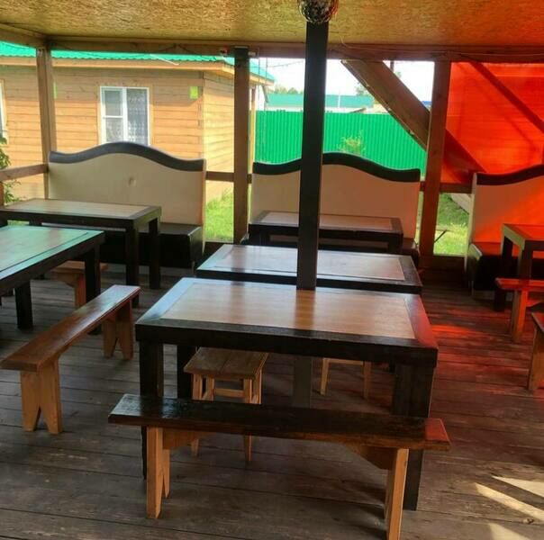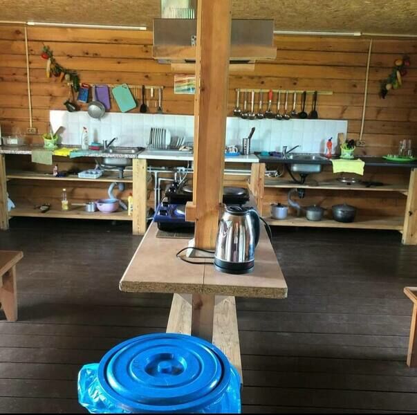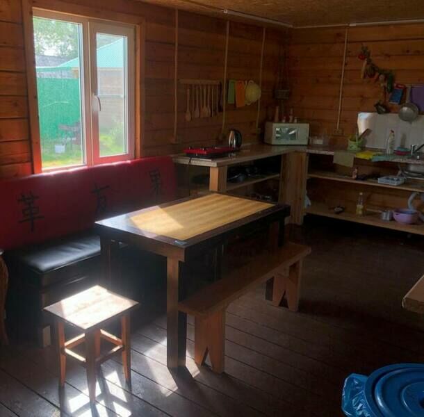 Большая летняя кухня совмещена с не менее большой верандой, где можно приготовить себе самому завтрак и отдохнуть на мягких диванчиках.